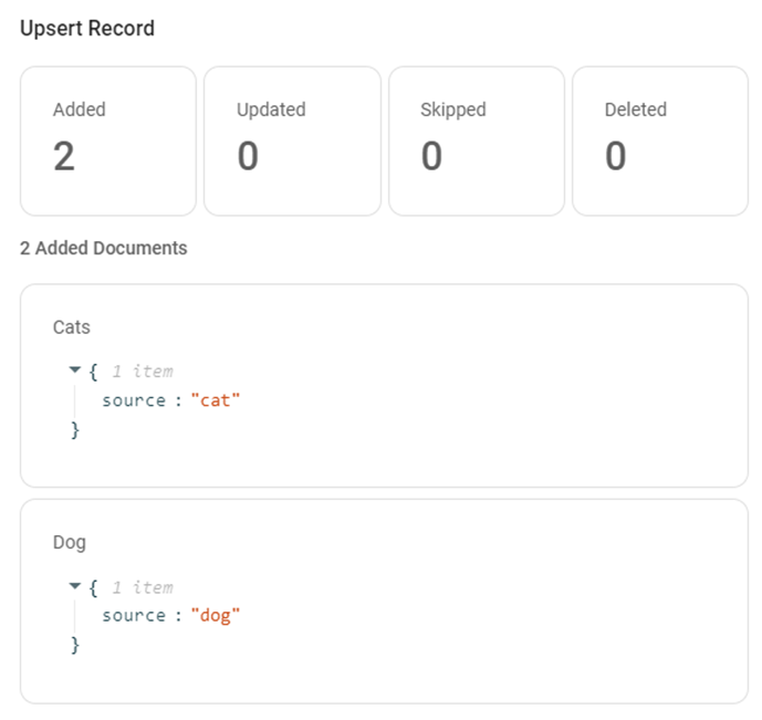 4.Now, if we delete the Dog document, and update Cat to Cats, we will now see the following: